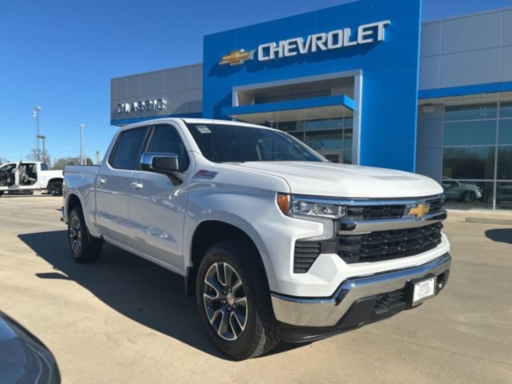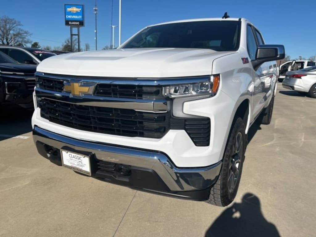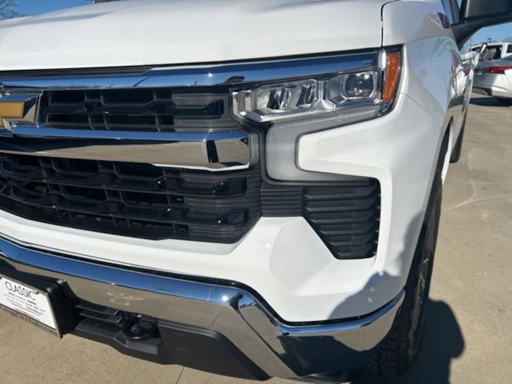 Summit White 2026 Chevrolet Silverado 1500 LT 4WD 10-Speed Automatic EcoTec3 5.3L V8 The 2026 Chevrolet Silverado 1500 comes with the following features; Convenience Package (120-Volt Bed Mounted Power Outlet, 120-Volt Interior Power Outlet, Dual-Zone Automatic Climate Control, Heated Steering Wheel, LED Cargo Area Lighting, Manual Tilt/Telescoping Steering Column, and Wrapped Steering Wheel), Remote Start Package (Electric Rear-Window Defogger and Remote Vehicle Starter System), Standard Suspension Package, Trailering Package (Hitch Guidance), 10-Speed Automatic, 4WD, Jet Black Cloth, 12.3 Multicolor Reconfigurable Digital Display, 220 Amp Alternator, 4-Wheel Disc Brakes, 40/20/40 Front Split-Bench Seat, 6 Speakers, 6-Speaker Audio System, ABS brakes, Air Conditioning, All-Star Edition, Alloy wheels, AM/FM radio: SiriusXM with 360L, Apple CarPlay/Android Auto, Auto High-beam Headlights, Auto-Locking Rear Differential, Automatic Emergency Braking, Automatic temperature control, Bluetooth® For Phone, Brake assist, Bumpers: chrome, Chrome Mirror Caps, Cloth Seat Trim, Color-Keyed Carpeting Floor Covering, Compass, Deep-Tinted Glass, Delay-off headlights, Driver door bin, Driver vanity mirror, Dual front impact airbags, Dual front side impact airbags, Electronic Cruise Control, Electronic Stability Control, Emergency communication system: OnStar, Following Distance Indicator, Forward Collision Alert, Front anti-roll bar, Front Center Armrest w/Storage, Front dual zone A/C, Front Frame-Mounted Black Recovery Hooks, Front Pedestrian Braking, Front reading lights, Front Rubberized Vinyl Floor Mats, Front wheel independent suspension, Fully automatic headlights, HD Rear Vision Camera, Heated door mirrors, Heated front seats, Heated Power-Adjustable Outside Mirrors, Heated steering wheel, Illuminated entry, Integrated Trailer Brake Controller, Low tire pressure warning, Occupant sensing airbag, OnStar Services Capable, Outside temperature display, Overhead airbag, Overhead console, Panic alarm, Passenger door bin, Passenger vanity mirror, Power door mirrors, Power driver seat, Power steering, Power windows, Premium audio system: Chevrolet Infotainment 3 Premium, Radio data system, Radio: Chevrolet Infotainment 3 Premium System, Rear reading lights, Rear Rubberized-Vinyl Floor Mats, Rear step bumper, Rear window defroster, Remote keyless entry, Security system, Speed control, Speed-sensing steering, Split folding rear seat, Standard Tailgate, Steering Wheel Audio Controls, Steering wheel mounted audio controls, Tachometer, Teen Driver, Telescoping steering wheel, Tilt steering wheel, Tire Pressure Monitoring System, Traction control, Trip computer, Variably intermittent wipers, Voltmeter, Wheels: 17 x 8 Bright Silver Painted Aluminum, and Wi-Fi Hot Spot Capable. 10-Speed Automatic, 4WD, Jet Black Cloth.