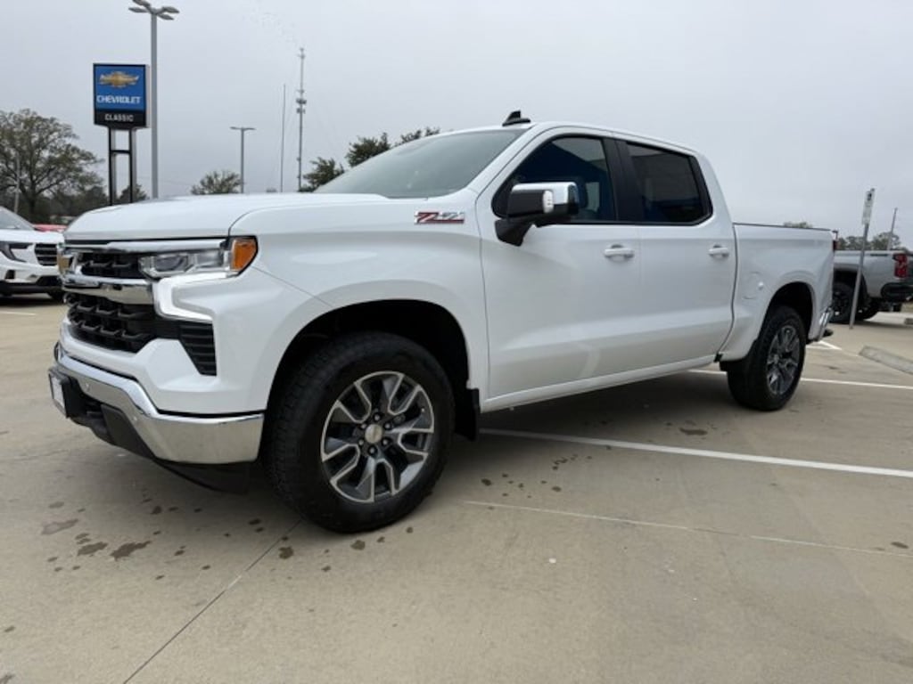 Summit White 2026 Chevrolet Silverado 1500 LT 4WD 10-Speed Automatic EcoTec3 5.3L V8 The 2026 Chevrolet Silverado 1500 comes with the following features; Convenience Package (10-Way Power Driver Seat w/Lumbar, 120-Volt Bed Mounted Power Outlet, 120-Volt Interior Power Outlet, Dual Rear USB Ports (Charge Only), Dual-Zone Automatic Climate Control, Heated Driver & Front Outboard Passenger Seats, Heated Steering Wheel, Keyless Open & Start, LED Cargo Area Lighting, Manual Tilt/Telescoping Steering Column, and Wrapped Steering Wheel), Remote Start Package (Electric Rear-Window Defogger, Remote Vehicle Starter System, and Theft Deterrent System (Unauthorized Entry)), Standard Suspension Package, Trailering Package (Hitch Guidance), 10-Speed Automatic, 4WD, Gideon/Very Dk Atmosphere Cloth, 12.3 Multicolor Reconfigurable Digital Display, 220 Amp Alternator, 4-Wheel Disc Brakes, 40/20/40 Front Split-Bench Seat, 6 Speakers, 6-Speaker Audio System, ABS brakes, Air Conditioning, All-Star Edition, Alloy wheels, AM/FM radio: SiriusXM with 360L, Apple CarPlay/Android Auto, Auto High-beam Headlights, Auto-Locking Rear Differential, Automatic Emergency Braking, Automatic temperature control, Bluetooth® For Phone, Brake assist, Bumpers: chrome, Chrome Mirror Caps, Cloth Seat Trim, Color-Keyed Carpeting Floor Covering, Compass, Deep-Tinted Glass, Delay-off headlights, Driver door bin, Driver vanity mirror, Dual front impact airbags, Dual front side impact airbags, Electronic Cruise Control, Electronic Stability Control, Emergency communication system: OnStar, EZ Lift Power Lock & Release Tailgate, Following Distance Indicator, Forward Collision Alert, Front anti-roll bar, Front Center Armrest w/Storage, Front dual zone A/C, Front Frame-Mounted Black Recovery Hooks, Front Pedestrian Braking, Front reading lights, Front Rubberized Vinyl Floor Mats, Front wheel independent suspension, Fully automatic headlights, HD Rear Vision Camera, Heated door mirrors, Heated front seats, Heated Power-Adjustable Outside Mirrors, Heated steering wheel, Illuminated entry, Inside Rear-View Mirror w/Tilt, Integrated Trailer Brake Controller, IntelliBeam Automatic High Beam On/Off, Lane Keep Assist w/Lane Departure Warning, Low tire pressure warning, Occupant sensing airbag, OnStar Services Capable, Outside temperature display, Overhead airbag, Overhead console, Panic alarm, Passenger door bin, Passenger vanity mirror, Power door mirrors, Power driver seat, Power Front Windows w/Driver Express Up/Down, Power Front Windows w/Passenger Express Down, Power Rear Windows w/Express Down, Power steering, Power windows, Premium audio system: Chevrolet Infotainment 3 Premium, Radio data system, Radio: Chevrolet Infotainment 3 Premium System, Rear 60/40 Folding Bench Seat (Folds Up), Rear reading lights, Rear Rubberized-Vinyl Floor Mats, Rear step bumper, Rear window defroster, Remote keyless entry, Security system, SiriusXM w/360L Trial Subscription, Speed control, Speed-sensing steering, Split folding rear seat, Standard Tailgate, Steering Wheel Audio Controls, Steering wheel mounted audio controls, Tachometer, Teen Driver, Telescoping steering wheel, Tilt steering wheel, Tire Pressure Monitoring System, Traction control, Trip computer, Variably intermittent wipers, Voltmeter, Wheels: 17 x 8 Bright Silver Painted Aluminum, and Wi-Fi Hot Spot Capable. 10-Speed Automatic, 4WD, Gideon/Very Dk Atmosphere Cloth.