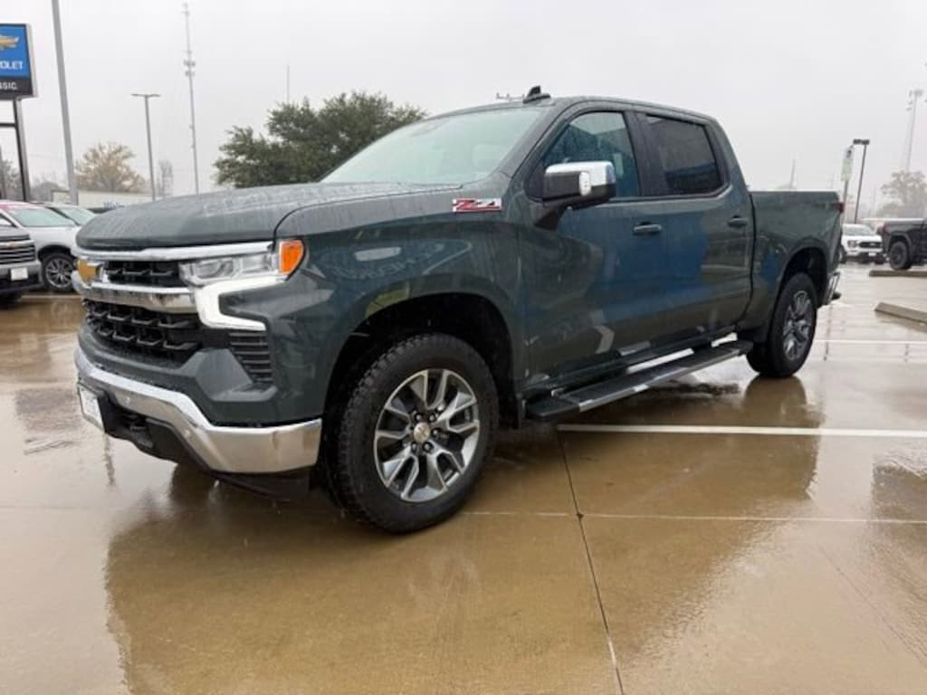 Cypress 2026 Chevrolet Silverado 1500 LT 4WD 10-Speed Automatic EcoTec3 5.3L V8 The 2026 Chevrolet Silverado 1500 comes with the following features; Convenience Package (120-Volt Bed Mounted Power Outlet, 120-Volt Interior Power Outlet, Dual-Zone Automatic Climate Control, Heated Steering Wheel, LED Cargo Area Lighting, Manual Tilt/Telescoping Steering Column, and Wrapped Steering Wheel), Convenience Package II (Universal Home Remote), Leather Package (Leather-Appointed Front Seat Trim), Preferred Equipment Group 1LT (12.3 Multicolor Reconfigurable Digital Display, 40/20/40 Front Split-Bench Seat, All-Star Edition, Auto-Locking Rear Differential, Bluetooth® For Phone, Chrome Mirror Caps, Cloth Seat Trim, Color-Keyed Carpeting Floor Covering, Deep-Tinted Glass, Electronic Cruise Control, Front Frame-Mounted Black Recovery Hooks, Front Rubberized Vinyl Floor Mats, HD Rear Vision Camera, Heated Power-Adjustable Outside Mirrors, Integrated Trailer Brake Controller, OnStar Services Capable, Rear Rubberized-Vinyl Floor Mats, Standard Tailgate, Steering Wheel Audio Controls, Teen Driver, Tire Pressure Monitoring System, Wheels: 17 x 8 Bright Silver Painted Aluminum, and Wi-Fi Hot Spot Capable), Protection Package (Rear Wheelhouse Liners), Remote Start Package (Electric Rear-Window Defogger and Remote Vehicle Starter System), Safety Package (HD Surround Vision, Perimeter Lighting, Rear Cross Traffic Braking, Rear Pedestrian Alert, Trailer Camera Provisions, and Trailer Side Blind Zone Alert), Standard Suspension Package, Trailering Package (Hitch Guidance), Z71 Off-Road Package (Heavy-Duty Air Filter, Hill Descent Control, Off-Road Suspension, and Wheels: 18 x 8.5 Bright Silver Painted Aluminum), 10-Speed Automatic, 4WD, Gideon/Very Dark Atmosphere Leather, 170 Amp Alternator, 2 USB Data Ports, 220 Amp Alternator, 3.23 Rear Axle Ratio, 4-Wheel Disc Brakes, 6 Speakers, 6-Speaker Audio System, ABS brakes, Air Conditioning, Alloy wheels, AM/FM radio: SiriusXM with 360L, Apple CarPlay/Android Auto, Auto High-beam Headlights, Automatic Emergency Braking, Automatic temperature control, Auxiliary External Transmission Oil Cooler, Brake assist, Bumpers: chrome, Compass, Delay-off headlights, Driver door bin, Driver vanity mirror, Dual front impact airbags, Dual front side impact airbags, Electronic Stability Control, Electronic Transmission Range Selector Shifter, Emergency communication system: OnStar, External Engine Oil Cooler, Floor Mounted Center Console, Following Distance Indicator, Forward Collision Alert, Front anti-roll bar, Front Bucket Seats, Front Center Armrest w/Storage, Front dual zone A/C, Front License Plate Kit, Front Pedestrian Braking, Front reading lights, Front wheel independent suspension, Fully automatic headlights, Heated door mirrors, Heated front seats, Heated steering wheel, Illuminated entry, Low tire pressure warning, Occupant sensing airbag, Outside temperature display, Overhead airbag, Overhead console, Panic alarm, Passenger door bin, Passenger vanity mirror, Power door mirrors, Power driver seat, Power steering, Power windows, Premium audio system: Chevrolet Infotainment 3 Premium, Radio data system, Radio: Chevrolet Infotainment 3 Premium System, Rear reading lights, Rear step bumper, Rear window defroster, Remote keyless entry, Security system, Speed control, Speed-sensing steering, Split folding rear seat, Steering wheel mounted audio controls, Tachometer, Telescoping steering wheel, Tilt steering wheel, Traction control, Trip computer, Variably intermittent wipers, Voltmeter, Wheels: 20 x 9 Painted Aluminum, and Wireless Charging. 10-Speed Automatic, 4WD, Gideon/Very Dark Atmosphere Leather.