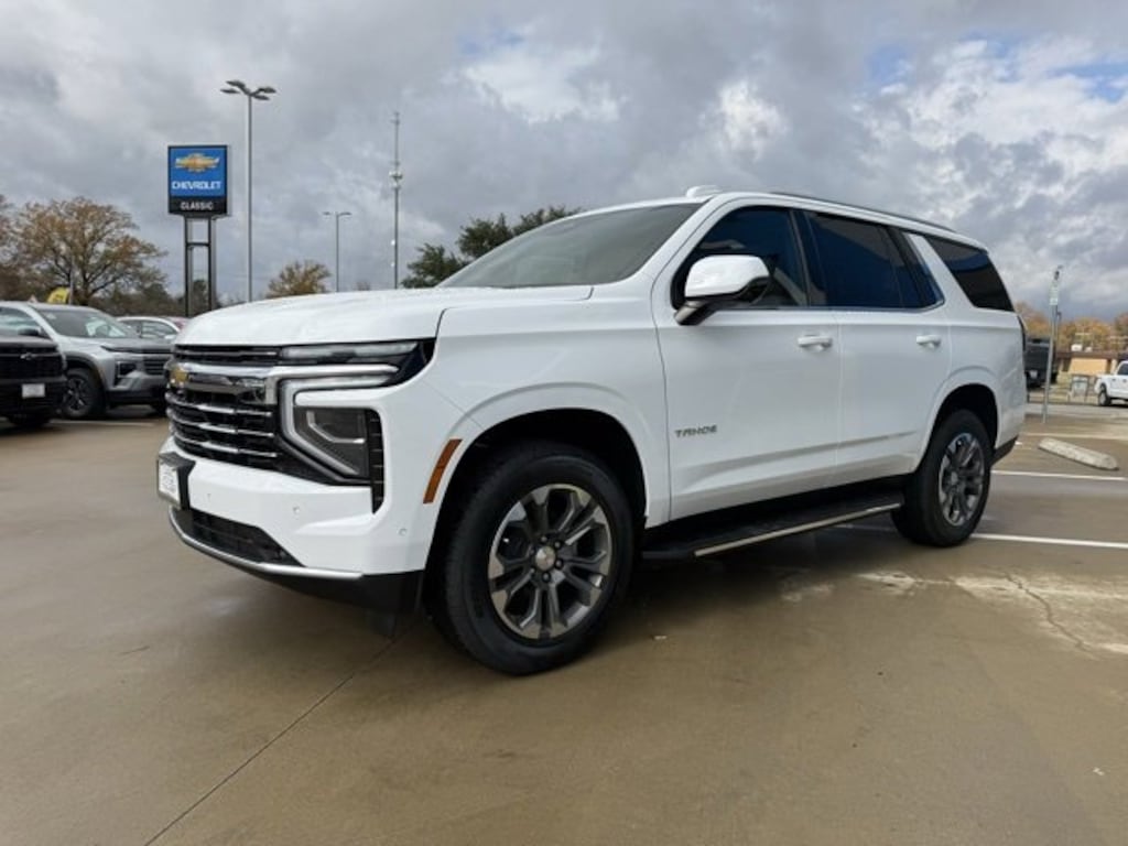 Summit White 2026 Chevrolet Tahoe LT RWD 10-Speed Automatic with Overdrive EcoTec3 5.3L V8 The 2026 Chevrolet Tahoe comes with the following features; Gideon/Very Dk Atmosphere Leather, 1st and 2nd Row Color-Keyed Carpeted Floor Mats, 2-Way Power Driver Lumbar Seat Adjuster, 2-Way Power Front Passenger Lumbar Seat Adjuster, 3-Spoke Wrapped Steering Wheel, 3.23 Rear Axle Ratio, 3rd Row Manual 60/40 Split-Folding Bench Seats, 3rd row seats: split-bench, 4-Wheel Disc Brakes, 6 Speakers, 6-Speaker Audio System Feature, 8-Way Power Driver Seat Adjuster, 8-Way Power Front Passenger Seat Adjuster, ABS brakes, Air Conditioning, Alloy wheels, AM/FM radio: SiriusXM with 360L, Apple CarPlay/Android Auto, Auto High-beam Headlights, Automatic temperature control, Brake assist, Bumpers: body-color, Color-Keyed Carpeting Floor Covering, Compass, Delay-off headlights, Driver door bin, Driver vanity mirror, Dual front impact airbags, Dual front side impact airbags, Electronic Stability Control, Emergency communication system: OnStar and Chevrolet connected services capable, Exterior Parking Camera Rear, Floor Console with Storage Area, Four wheel independent suspension, Front anti-roll bar, Front Bucket Seats, Front Center Armrest, Front dual zone A/C, Front reading lights, Frontal Driver and Outboard Passenger Airbags, Fully automatic headlights, Heated door mirrors, Heated Driver and Front Passenger Seats, Heated front seats, Illuminated entry, Interior Camera, Key Card, Leather-Appointed Seat Trim, Low tire pressure warning, Memory seat, Memory Settings For Driver, Navigation system: Google built-in compatibility (select service plan required, terms and limitations apply), Occupant sensing airbag, Outside temperature display, Overhead airbag, Overhead console, Panic alarm, Passenger door bin, Passenger vanity mirror, Power door mirrors, Power driver seat, Power Liftgate, Power passenger seat, Power steering, Power windows, Premium audio system: Chevrolet Infotainment 3 Premium, Premium Smooth Ride Suspension, Radio data system, Radio: 17.7 Diagonal Advanced Color LCD Display, Rain sensing wipers, Rear air conditioning, Rear anti-roll bar, Rear Power Liftgate, Rear reading lights, Rear seat center armrest, Rear window defroster, Rear window wiper, Remote keyless entry, Remote Start, Security system, SiriusXM with 360L Trial Subscription, Speed control, Speed-sensing steering, Split folding rear seat, Spoiler, Steering wheel mounted audio controls, Tachometer, Telescoping steering wheel, Tilt steering wheel, Traction control, Trip computer, USB Ports, Variably intermittent wipers, Voltmeter, Wheels: 18 x 8.5 Bright Silver Painted Aluminum, and Wireless Phone Charging. Gideon/Very Dk Atmosphere Leather.