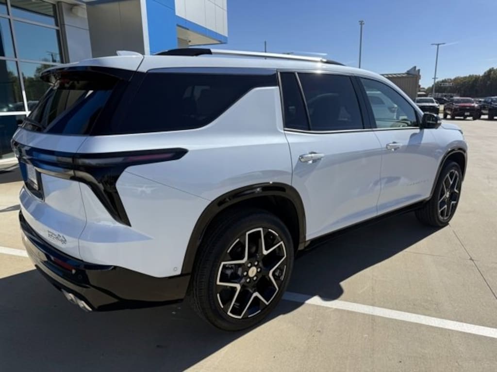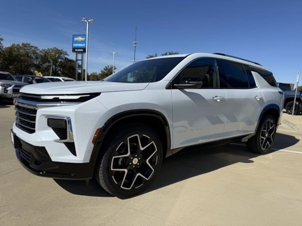 Polar White 2026 Chevrolet Traverse High Country FWD 8-Speed Automatic 2.5L DOHC 20/26 City/Highway MPG The 2026 Chevrolet Traverse comes with the following features; 12 Speakers, 3rd row seats: split-bench, 4-Wheel Disc Brakes, 6-Way Power Front Passenger Seat Adjuster, 8-Way Power Driver Seat Adjuster, ABS brakes, Air Conditioning, Alloy wheels, AM/FM radio: SiriusXM with 360L, Apple CarPlay/Android Auto, Auto High-beam Headlights, Auto tilt-away steering wheel, Auto-dimming door mirrors, Automatic temperature control, Bose Premium 12-Speaker Audio System Feature, Brake assist, Bumpers: body-color, Child-Seat-Sensing Airbag, Compass, Delay-off headlights, Driver 4-Way Power Lumbar Seat Adjuster, Driver door bin, Driver vanity mirror, Dual front impact airbags, Dual front side impact airbags, Electronic Stability Control, Emergency communication system: OnStar, Exterior Parking Camera Rear, Four wheel independent suspension, Front anti-roll bar, Front Bucket Seats, Front Center Armrest, Front dual zone A/C, Front Passenger 4-Way Power Lumbar Seat Adjuster, Front reading lights, Fully automatic headlights, Garage door transmitter, Heated door mirrors, Heated front seats, Heated rear seats, Heated steering wheel, Illuminated entry, Low tire pressure warning, Memory seat, Navigation System, Occupant sensing airbag, Outside temperature display, Overhead airbag, Overhead console, Panic alarm, Passenger door bin, Passenger vanity mirror, Perforated Leather-Appointed Seat Trim, Power door mirrors, Power driver seat, Power Liftgate, Power passenger seat, Power steering, Power windows, Radio data system, Rain sensing wipers, Rear air conditioning, Rear anti-roll bar, Rear reading lights, Rear window defroster, Rear window wiper, Remote keyless entry, Security system, Speed control, Speed-sensing steering, Spoiler, Steering wheel memory, Steering wheel mounted audio controls, Tachometer, Telescoping steering wheel, Tilt steering wheel, Traction control, Trip computer, Turn signal indicator mirrors, Variably intermittent wipers, Ventilated front seats, Voltmeter, and Wheels: 22 High-Gloss Black Aluminum.