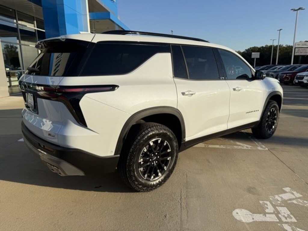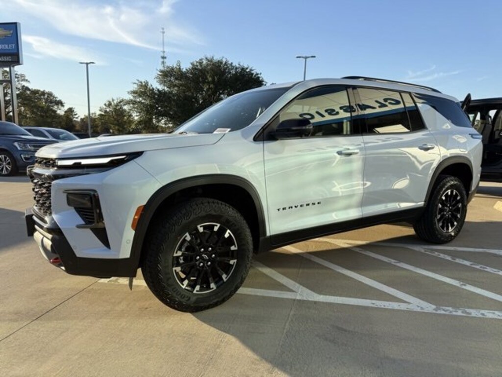 Polar White 2026 Chevrolet Traverse Z71 AWD 8-Speed Automatic 2.5L DOHC The 2026 Chevrolet Traverse comes with the following features; AWD, 3rd row seats: split-bench, 4-Way Manual Front Passenger Seat Adjuster, 4-Wheel Disc Brakes, 6 Speakers, 6-Speaker Audio System Feature, 8-Way Power Driver Seat Adjuster, ABS brakes, Air Conditioning, Alloy wheels, AM/FM radio: SiriusXM with 360L, Apple CarPlay/Android Auto, Auto High-beam Headlights, Automatic temperature control, Brake assist, Child-Seat-Sensing Airbag, Compass, Delay-off headlights, Driver door bin, Driver vanity mirror, Dual front impact airbags, Dual front side impact airbags, Electronic Stability Control, Emergency communication system: OnStar, Evotex Seat Trim, Four wheel independent suspension, Front anti-roll bar, Front Bucket Seats, Front Center Armrest, Front dual zone A/C, Front reading lights, Fully automatic headlights, Heated door mirrors, Heated front seats, Heated steering wheel, Illuminated entry, Low tire pressure warning, Navigation System, Occupant sensing airbag, Outside temperature display, Overhead airbag, Overhead console, Panic alarm, Passenger door bin, Passenger vanity mirror, Power door mirrors, Power driver seat, Power Liftgate, Power steering, Power windows, Radio data system, Rear air conditioning, Rear anti-roll bar, Rear reading lights, Rear window defroster, Rear window wiper, Remote keyless entry, Security system, Speed control, Speed-sensing steering, Spoiler, Steering wheel mounted audio controls, Tachometer, Telescoping steering wheel, Tilt steering wheel, Traction control, Trip computer, Turn signal indicator mirrors, Variably intermittent wipers, and Voltmeter. AWD.