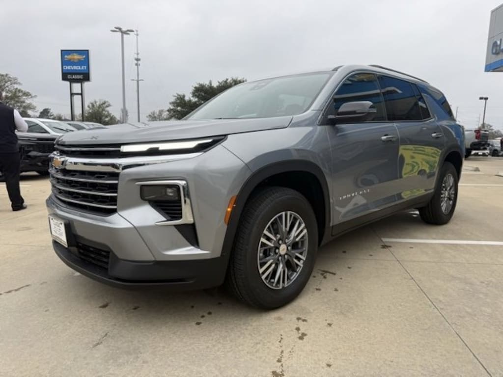 Sterling 2026 Chevrolet Traverse LT FWD 8-Speed Automatic 2.5L DOHC 20/26 City/Highway MPG The 2026 Chevrolet Traverse comes with the following features; 3rd row seats: split-bench, 4-Way Manual Front Passenger Seat Adjuster, 4-Wheel Disc Brakes, 6 Speakers, 6-Speaker Audio System Feature, 8-Way Power Driver Seat Adjuster, ABS brakes, Air Conditioning, Alloy wheels, AM/FM radio: SiriusXM with 360L, Apple CarPlay/Android Auto, Auto High-beam Headlights, Automatic temperature control, Brake assist, Bumpers: body-color, Child-Seat-Sensing Airbag, Compass, Delay-off headlights, Driver door bin, Driver vanity mirror, Dual front impact airbags, Dual front side impact airbags, Electronic Stability Control, Emergency communication system: OnStar, Four wheel independent suspension, Front anti-roll bar, Front Bucket Seats, Front Center Armrest, Front dual zone A/C, Front reading lights, Fully automatic headlights, Heated door mirrors, Heated front seats, Heated steering wheel, Illuminated entry, Low tire pressure warning, Navigation System, Occupant sensing airbag, Outside temperature display, Overhead airbag, Overhead console, Panic alarm, Passenger door bin, Passenger vanity mirror, Power door mirrors, Power driver seat, Power Liftgate, Power steering, Power windows, Premium Cloth Seat Trim, Radio data system, Rear air conditioning, Rear anti-roll bar, Rear reading lights, Rear window defroster, Rear window wiper, Remote keyless entry, Security system, Speed control, Speed-sensing steering, Spoiler, Steering wheel mounted audio controls, Tachometer, Telescoping steering wheel, Tilt steering wheel, Traction control, Trip computer, Turn signal indicator mirrors, Variably intermittent wipers, Voltmeter, and Wheels: 18 Grazen Metallic Machined-Face Aluminum.
