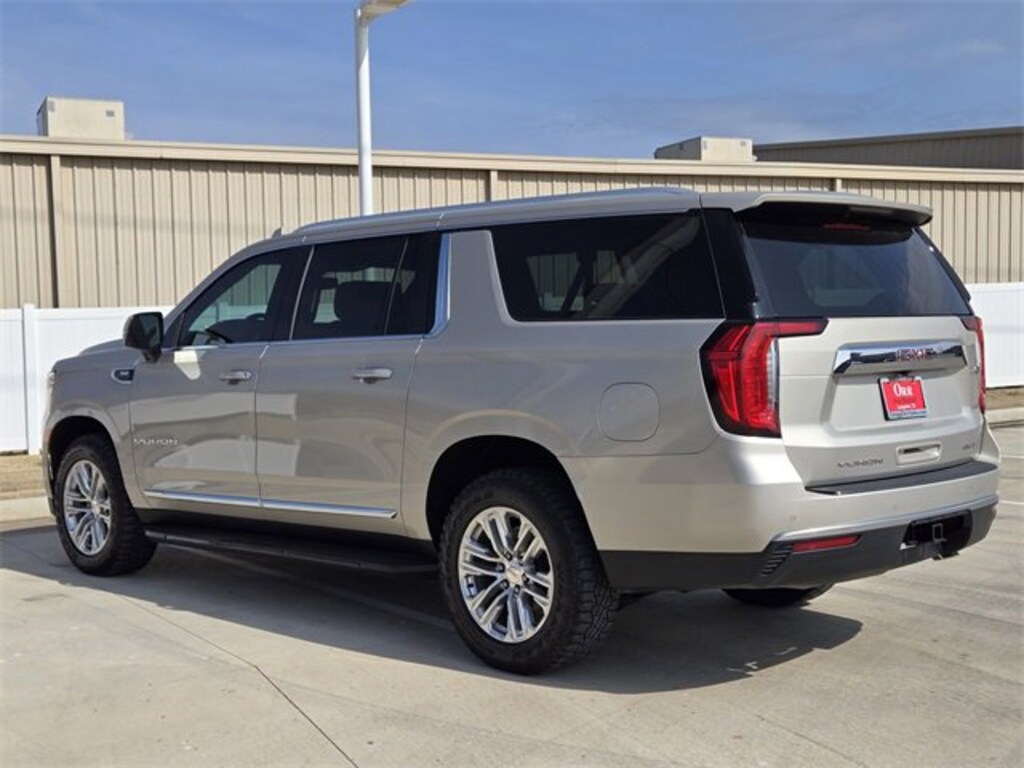 This 2021 GMC Yukon XL comes equipped with License Plate Front Mounting Package, Max Trailering Package (Extra Capacity Cooling System), Preferred Equipment Group 4SA (12-Way Power Seat Adjusters, 2 Presets For Power Driver Seat, Bose 9-Speaker Stereo Audio System Feature, Bright Chrome Bodyside Moldings, Bright Front & Rear Door Sill Plates, Chrome Door Handles w/Body-Color Strip, Hands-Free Power Programmable Rear Liftgate, Heated & Ventilated Driver & Front Passenger Seats, Heated Driver & Front Passenger Seats, Inside Rear-View Auto-Dimming Mirror, Safety Alert Seat, and Universal Home Remote), Rear Media & Nav Package (Radio: AM/FM/SiriusXM w/Navigation, Rear Seat Media System, HD Radio, and SiriusXM w/360L), SLT Luxury Package (2 Presets For Outside Rearview Mirrors, 3rd Row 60/40 Power-Folding Split-Bench Seat, HD Surround Vision, Heated 2nd Row Outboard Position Seats, Heated Automatic Steering Wheel, Outside Heated Power-Adjustable Mirrors, Power Release 2nd Row 60/40 Split-Folding Bench Seat, Power Tilt & Telescopic Steering Column, and Rear Pedestrian Alert), 4WD, 3.23 Rear Axle Ratio, 3rd row seats: split-bench, 4-Wheel Disc Brakes, 9 Speakers, ABS brakes, Air Conditioning, All-Weather Cargo Mat (LPO), Alloy wheels, AM/FM radio: SiriusXM with 360L, Apple CarPlay/Android Auto, Auto High-beam Headlights, Auto-dimming Rear-View mirror, Automatic Emergency Braking, Automatic temperature control, Bodyside moldings, Brake assist, Bumpers: body-color, Compass, Delay-off headlights, Driver door bin, Driver vanity mirror, Dual front impact airbags, Dual front side impact airbags, Electronic Stability Control, Emergency communication system: OnStar and GMC connected services capable, Following Distance Indicator, Forward Collision Alert, Four wheel independent suspension, Front & Rear Park Assist, Front anti-roll bar, Front Bucket Seats, Front Center Armrest, Front dual zone A/C, Front fog lights, Front Pedestrian Braking, Front reading lights, Fully automatic headlights, Garage door transmitter, Heated door mirrors, Heated front seats, Hitch Guidance w/Hitch View, Illuminated entry, In-Vehicle Trailering App, Integrated Trailer Brake Controller, IntelliBeam Automatic High Beam On/Off, Lane Change Alert w/Side Blind Zone Alert, Lane Keep Assist w/Lane Departure Warning, Leather steering wheel, Low tire pressure warning, Memory seat, Occupant sensing airbag, Outside temperature display, Overhead airbag, Overhead console, Panic alarm, Passenger door bin, Passenger vanity mirror, Perforated Leather Seating Surfaces, Polished Exhaust Tip, Power door mirrors, Power driver seat, Power Liftgate, Power passenger seat, Power Release 2nd Row Bucket Seats, Power steering, Power windows, Premium Smooth Ride Suspension, Radio: AM/FM/SiriusXM, Rain sensing wipers, Rear air conditioning, Rear anti-roll bar, Rear Cross Traffic Alert, Rear reading lights, Rear seat center armrest, Rear window defroster, Rear window wiper, Remote keyless entry, Roof rack: rails only, Security system, Speed control, Speed-sensing steering, Split folding rear seat, Spoiler, Steering wheel mounted audio controls, Tachometer, Telescoping steering wheel, Tilt steering wheel, Traction control, Trailer Side Blind Zone Alert, Trip computer, Variably intermittent wipers, Ventilated front seats, Voltmeter, and Wheels: 20 x 9 6-Spoke Polished Aluminum. 4WD, 12-Way Power Seat Adjusters, 2 Presets For Outside Rearview Mirrors, 2 Presets For Power Driver Seat, 3rd Row 60/40 Power-Folding Split-Bench Seat, Bose 9-Speaker Stereo Audio System Feature, Bright Chrome Bodyside Moldings, Bright Front & Rear Door Sill Plates, Chrome Door Handles w/Body-Color Strip, Extra Capacity Cooling System, Hands-Free Power Programmable Rear Liftgate, HD Surround Vision, Heated & Ventilated Driver & Front Passenger Seats, Heated 2nd Row Outboard Position Seats, Heated Automatic Steering Wheel, Heated Driver & Front Passenger Seats, Inside Rear-View Auto-Dimming Mirror, License Plate Front M