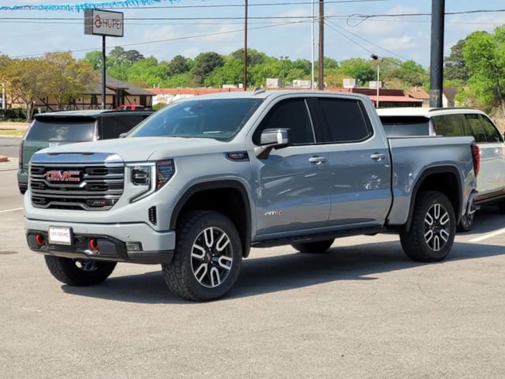 This 2024 GMC Sierra 1500 comes equipped with AT4 Preferred Package (Power Sliding Rear Window w/Rear Defogger and Universal Home Remote), AT4 Premium Package (Off-Road High Clearance Step (LPO)), Preferred Equipment Group 4SB (120-Volt Interior Power Outlet, 2 Charge/Data USB Ports Inside Center Console, 2 Type-C Charge-Only Rear USB Ports, 2 USB Ports, 220 Amp Alternator, Auto-Locking Rear Differential, Black Chrome Header & Grille Insert Bars, Color-Keyed Carpeting Floor Covering, Deep-Tinted Glass, Electric Rear-Window Defogger, Floor-Mounted Center Console, Front Prem Floor Liners w/Removable Carpet Insert, Front Rain-Sensing Wipers, GMC Connected Access Capable, HD Surround Vision, Heated 2nd Row Outboard Seats, Heated Driver & Front Outboard Passenger Seating, Heavy-Duty Air Filter, Hill Descent Control, Hitch View, In-Vehicle Trailering System App, Integrated Trailer Brake Controller, Keyless Open & Start, LED Cargo Area Lighting, OnStar & GMC Connected Services Capable, Perimeter Lighting, Power Door Locks, Power Front Passenger Windows w/Express Up/Down, Power Front Windows w/Driver Express Up/Down, Power Rake & Telescoping Steering Column, Power Rear Windows w/Express Down, Premium Bose 7-Speaker Sound System, Push Button Start, Rear Cross Traffic Braking, Rear Pedestrian Detection, Rear Wheelhouse Liners, Red Recovery Hooks, Remote Vehicle Starter System, SiriusXM w/360L, Spray-On Pickup Bedliner w/AT4 Logo, Steering Wheel Audio Controls, Theft Deterrent System (Unauthorized Entry), Trailer Camera Provisions, Trailer Side Blind Zone Alert, Ultrasonic Front & Rear Park Assist, Ventilated Driver & Front Passenger Seats, Wi-Fi Hotspot Capable, Wireless Charging, 120-Volt Bed Mounted Power Outlet, and Rear Prem Floor Liners w/Removable Carpet Insert), Technology Package (Bed View Camera, Multicolor 15 Diagonal Head-Up Display, and Rear Camera Mirror), Trailering Package (Hitch Guidance), 10-Speed Automatic, 4WD, Jet Black With Kalahari Accents Leather, Navigation System, 10-Way Power Driver Seat Adjuster w/Lumbar, 10-Way Power Passenger Seat Adjuster w/Lumbar, 170 Amp Alternator, 18 x 8.5 Machined Aluminum Wheels, 3.23 Rear Axle Ratio, 4-Wheel Disc Brakes, 7 Speakers, ABS brakes, Air Conditioning, Alloy wheels, AM/FM radio: SiriusXM with 360L, Apple CarPlay/Android Auto, Auto High-beam Headlights, Auto-dimming door mirrors, Auto-dimming Rear-View mirror, Automatic Emergency Braking, Automatic temperature control, Auxiliary External Transmission Oil Cooler, Block heater, Brake assist, Buckle to Drive, Bumpers: body-color, Compass, Delay-off headlights, Driver door bin, Driver Memory, Driver vanity mirror, Dual Active Exhaust, Dual front impact airbags, Dual front side impact airbags, Electronic Stability Control, External Engine Oil Cooling, Following Distance Indicator, Forward Collision Alert, Front anti-roll bar, Front Bucket Seats, Front Center Armrest, Front dual zone A/C, Front fog lights, Front License Plate Kit, Front Pedestrian Braking, Front reading lights, Front wheel independent suspension, Fully automatic headlights, Heated door mirrors, Heated front seats, Heated rear seats, Heated steering wheel, Illuminated entry, IntelliBeam Automatic High Beam On/Off, Lane Keep Assist w/Lane Departure Warning, Low tire pressure warning, Memory seat, Occupant sensing airbag, Off-Road Suspension, Outside temperature display, Overhead airbag, Overhead console, Panic alarm, Passenger door bin, Passenger vanity mirror, Perforated Front Leather Seat Trim, Power door mirrors, Power driver seat, Power passenger seat, Power steering, Power Sunroof, Power windows, Premium audio system: GMC Infotainment System, Radio data system, Radio: Premium GMC Infotainment Audio System, Rain sensing wipers, Rear reading lights, Rear seat center armrest, Rear step bumper, Rear window defroster, Remote keyless entry, Safety Alert Seat, Security system, Speed control, Speed-sensing steering, Spl