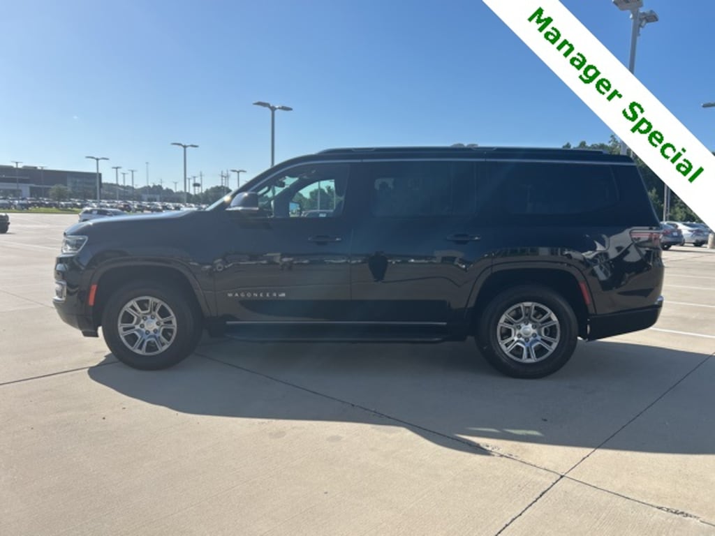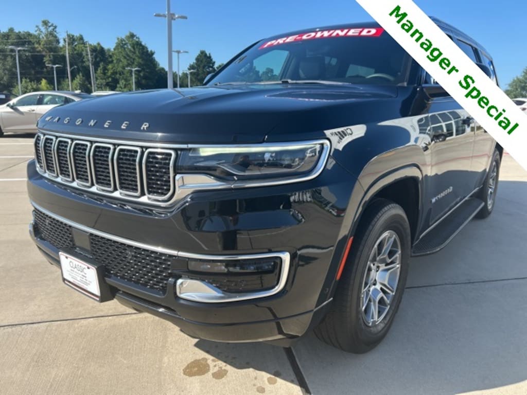 CARFAX One-Owner. Classic CDJR in Texarkana is proud to offer this great-looking 2023 Jeep Wagoneer in Diamond Black Crystal Pearlcoat. This 2023 Jeep Wagoneer comes with the following features; Quick Order Package 22E (DISC), 10 Speakers, 3.21 Rear Axle Ratio, 3rd row seats: bench, 4-Wheel Disc Brakes, ABS brakes, Adjustable pedals, Air Conditioning, Alloy wheels, AM/FM radio: SiriusXM with 360L, Anti-whiplash front head restraints, Audio memory, Auto-dimming door mirrors, Auto-dimming Rear-View mirror, Auto-leveling suspension, Automatic temperature control, Brake assist, Bumpers: body-color, Compass, Delay-off headlights, Driver door bin, Driver vanity mirror, Driver's Seat Mounted Armrest, Dual front impact airbags, Dual front side impact airbags, Electronic Stability Control, Emergency communication system: Automatic SOS Call, Exterior Parking Camera Rear, Four wheel independent suspension, Front anti-roll bar, Front Bucket Seats, Front Center Armrest w/Storage, Front dual zone A/C, Front fog lights, Front reading lights, Fully automatic headlights, Garage door transmitter, Heated door mirrors, Heated front seats, Heated steering wheel, Illuminated entry, Knee airbag, Leather Trimmed Bucket Seats, Low tire pressure warning, Memory seat, Navigation System, Normal Duty Suspension, Occupant sensing airbag, Outside temperature display, Overhead airbag, Overhead console, Panic alarm, Passenger door bin, Passenger seat mounted armrest, Passenger vanity mirror, Pedal memory, Power adjustable front head restraints, Power door mirrors, Power driver seat, Power Liftgate, Power passenger seat, Power steering, Power windows, Radio data system, Radio: Uconnect 5 Nav w/10.1" Display, Rear air conditioning, Rear anti-roll bar, Rear dual zone A/C, Rear reading lights, Rear seat center armrest, Rear window defroster, Rear window wiper, Reclining 3rd row seat, Remote keyless entry, Security system, Speed control, Speed-sensing steering, Speed-Sensitive Wipers, Split folding rear seat, Steering wheel memory, Steering wheel mounted audio controls, Tachometer, Telescoping steering wheel, Tilt steering wheel, Traction control, Trip computer, Turn signal indicator mirrors, Variably intermittent wipers, Ventilated front seats, Voltmeter, and Wheels: 18" x 8.0" Aluminum Base Finish.