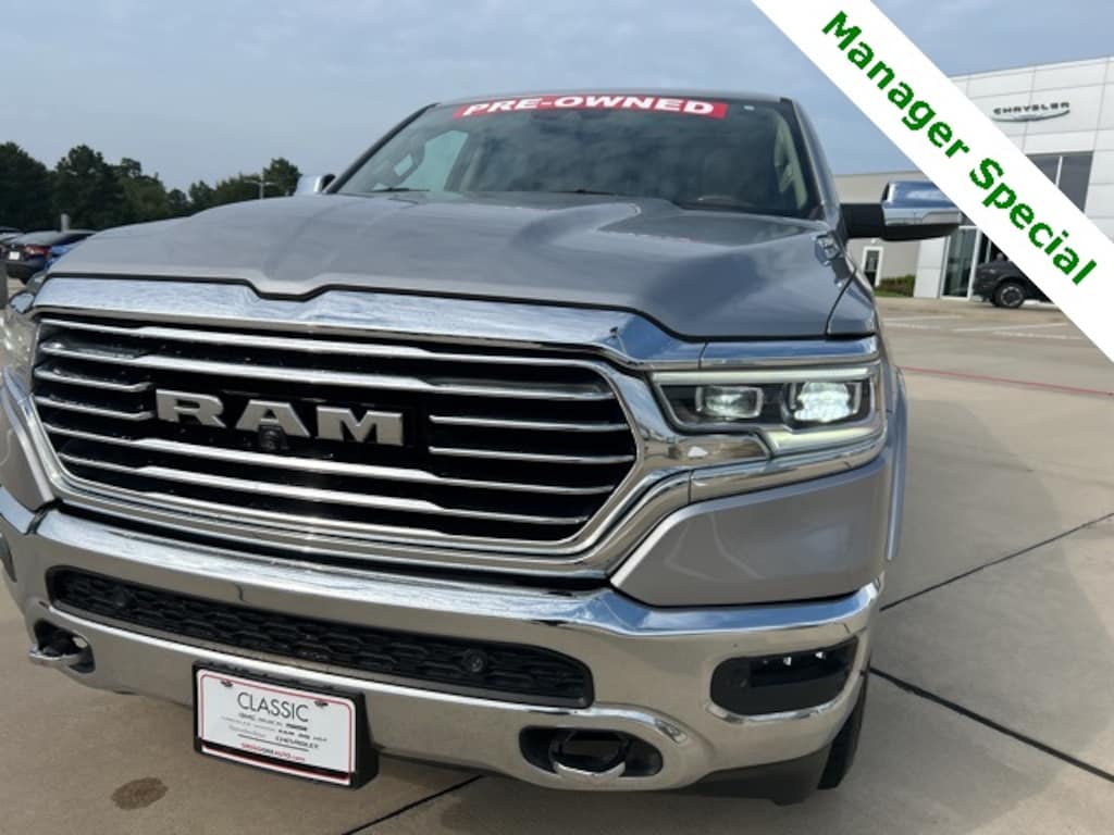 Clean CARFAX. Classic CDJR in Texarkana is proud to offer this outstanding-looking 2020 Ram 1500 in Billet Silver. This 2020 Ram 1500 comes with the following features; Advanced Safety Group (Adaptive Cruise Control w/Stop & Go, Full Speed Forward Collision Warning Plus, Lane Keep Assist, and Parallel & Perp Park Assist w/Stop), Longhorn Level 1 Equipment Group (1-Yr SiriusXM Guardian Trial, 12" Touchscreen Display, 4G LTE Wi-Fi Hot Spot, 5-Year SiriusXM Travel Link Service, Apple CarPlay, Blind Spot & Cross Path Detection, Disassociated Touchscreen Display, Foam Bottle Insert (Door Trim Panel), For Details, Visit DriveUconnect.com, Google Android Auto, GPS Antenna Input, GPS Navigation, harman/kardon 19 Speaker Premium Sound, HD Radio, Integrated Center Stack Radio, Power Running Boards, SiriusXM Satellite Radio, SiriusXM Traffic Plus, SiriusXM Travel Link, SiriusXM w/360L, USB Host Flip, Ventilated Rear Seats, and Wireless Charging Pad), Protection Group, Quick Order Package 27K Longhorn, #1 Seat Foam Cushion, 10 Speakers, 3 Rear Seat Head Restraints, 3.21 Rear Axle Ratio, 3.92 Rear Axle Ratio, 33 Gallon Fuel Tank, 4 Way Front Headrests, 4-Wheel Disc Brakes, 48V Belt Starter Generator, ABS brakes, Adjustable pedals, Air Conditioning, Alloy wheels, AM/FM radio: SiriusXM, Anti-Spin Differential Rear Axle, Apple CarPlay/Android Auto, Audio memory, Auto High-beam Headlights, Auto-dimming door mirrors, Auto-dimming Rear-View mirror, Automatic temperature control, Brake assist, Bucket Seats, Bumpers: chrome, Compass, Delay-off headlights, Dome Dual LED Reading Lamp, Driver door bin, Driver Seat Memory, Driver vanity mirror, Dual front impact airbags, Dual front side impact airbags, Dual-Pane Panoramic Sunroof, Electronic Stability Control, Emergency communication system: SiriusXM Guardian, Front anti-roll bar, Front Bucket Seats, Front Center Armrest w/Storage, Front dual zone A/C, Front fog lights, Front reading lights, Front Seat Back Map Pockets, Front wheel independent suspension, Fully automatic headlights, Garage door transmitter, Genuine wood console insert, Genuine wood dashboard insert, Genuine wood door panel insert, Heated door mirrors, Heated Front Seats, Heated front seats, Heated rear seats, Heated Second Row Seats, Heated Steering Wheel, Heated steering wheel, Heavy-Duty Engine Cooling, Illuminated entry, Leather steering wheel, LED Dome/Reading Lamp, Low tire pressure warning, Memory seat, Navigation System, Occupant sensing airbag, Outside temperature display, Overhead airbag, Overhead console, Panic alarm, ParkView Rear Back-Up Camera, Passenger door bin, Passenger vanity mirror, Pedal memory, Pick-Up Box Lighting, Power 4-Way Driver Lumbar Adjust, Power 4-Way Passenger Lumbar Adjust, Power 8-Way Driver & Passenger Seats, Power door mirrors, Power driver seat, Power passenger seat, Power steering, Power windows, Premium Leather Seats w/Filigree, Radio data system, Radio: Uconnect 4C Nav w/8.4" Display, Rain sensing wipers, Rear 60/40 Folding Split Recline Seat, Rear anti-roll bar, Rear seat center armrest, Rear step bumper, Rear window defroster, Remote keyless entry, Security system, Speed control, Split folding rear seat, Steering wheel mounted audio controls, Surround View Camera System, Tachometer, Telescoping steering wheel, Tilt steering wheel, Traction control, Trailer Brake Control, Trip computer, Turn signal indicator mirrors, Variably intermittent wipers, Ventilated Front Seats, Ventilated front seats, Voltmeter, Wheels: 20" x 9" Aluminum Painted/Polished, and Wheels: 22" x 9" Polish/Painted w/InsertS.